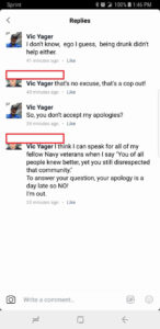 But he is, according to his FB page, now a Proud Navy Veteran. Proud of WTF exactly? Some folks have no shame.