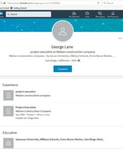 Our partners at Military Phonies share their research on this George Frederick Lane fellow who claims to be a former member of the elite Marine Corps’ Force Recon unit in Vietnam on his Linked In profile. He also claims to be a Marine Corps officer;