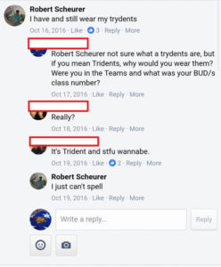 Our partners at Military Phonies share their work with us on Robert Rudole Scheurer who claims in social media that he was a SEAL in Vietnam, but he can’t remember his BUD/S class number after all of these years;