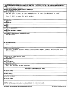 Assuming that there is a typo overlap on the FOIA response, here is what appears to be his military service timeline: