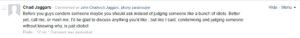 Leg Jaggars bravely made a Facebook comment here and then blocked me.