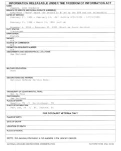The way I read the FOIA and the 2-1 is he was shitcanned twice. Once from Fort Lee in 1989 after only three weeks of whatever AIT (Water Purification Specialist?) he attempted and then nine years later in 1998 from Fort Jackson after only a month of Basic Training.