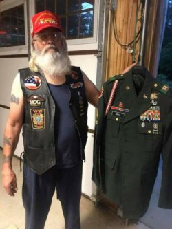 I note he is claiming membership in the Harley Owners Group (HOG) and the VFW on his leather vest. So, the only thing missing is his “service” dog to treat his PTSD from all that combat in three theaters of war for over 40 years. Is he from Floriduh?