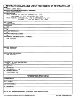 James was discharged as an E-5, HT2 (Hull Technician). His service record shows No BUD/S, no SEAL Team. He did earn the designation of Second Class Diver. No Vietnam, No Iraq and No Afghanistan. No records were located of him serving in the US Army.