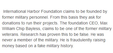 His latest endeavor is the International Harbor Foundation which Bayless founded using his military background as a selling point;