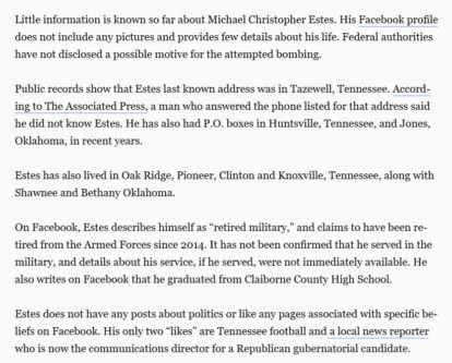 Last month we wrote about Michael Christopher Estes who attempted to bomb the Asheville, North Carolina airport in order to start a race war in the United States. Luckily, he was arrested before he trigger his homemade device. According to Heavy, Estes claimed on his Facebook page to be retired from the military.