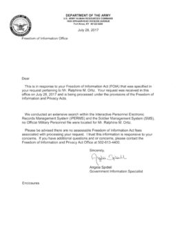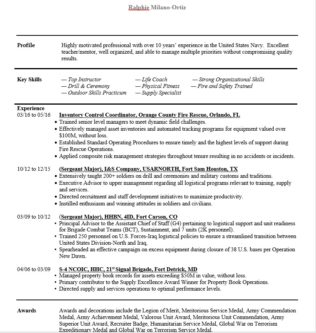 Someone sent us their work on this Ralphie Ortiz fellow. Ralphie, of Orlando, Florida, claims on his résumé to be a retired Army sergeant major;