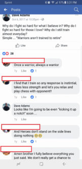 David Dwight Adams only experience as a warrior has been at Brucie’s Bath House (Entrance in the rear) as a fluffer for the patrons. And his seal expereience is just him bragging about how loves to susck off the patrons.