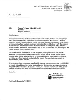 The National Personnel Records Center says “Nope”;