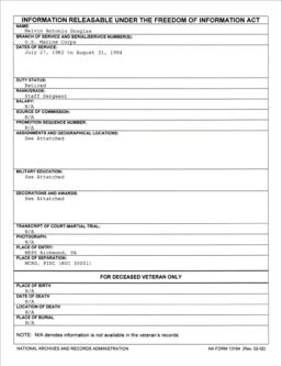 There’s no indication in the FOIA that he performed any military duty after 1994. So if he was initially placed on the TDRL, at some point his retirement was made permanent. The most likely scenario was that at the first re-evaluation, his condition was deemed to be stable enough that he could be permanently retired.