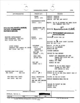 On page 9 of the FOIA results, it shows that Douglas was awarded a Sea Service Deployment Ribbon (SSDR) on 19 Nov 1983. He was with 3rd MARDIV at the time so this award could not be related to BLT 1/8. BLT 1/8 members received a SSDR for ending their mission to Beirut around this same date.