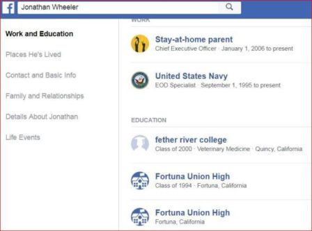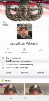 Jonathan Lee Wheeler, phony Navy EOD with only 5 months and 16 days in the Navy, lists himself as both, “in the Navy” and as a “stay at home parent”. Quick to act without thinking in order to go for what “he wants”. Doesn’t think his actions through, and doesn’t think about how others would see his actions.