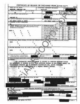 He musta done some serious dick-stepping, the way all that info is blacked out in his DD-214. He doesn’t even get credit for graduating boot camp at Great Lakes, even though he was there five and a half months.