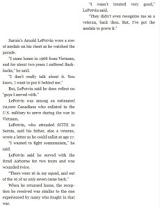 When he came back from Vietnam, LePotvin says that he was sent to Fort Bragg, Virginia and after that he was sent to Cyprus while he was assigned to the United Nations special forces.