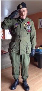 He has to have served in the Viet of the Nam. He has a booney hat folded up and tucked under the epaulet of his jacket in one of the photos.