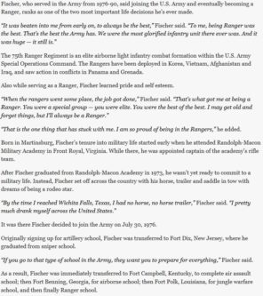 Fischer was eventually reassigned to the 75th Ranger Regiment in Turkey.