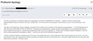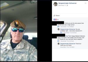 Our partners at Guardians of the Green Beret share their work with us on this fellow Travis Schwarzer who claimed to have been a Special Forces Sergeant Major when he was ordering coffee, for some reason. He claimed that he was still involved working with Ranger School’s Mountain Phase and at Robin Sage;