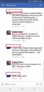 Our partners at Military Phonies share their work on this fellow, Stephen Charles Bayer, who claims that he was a graduate of BUD/S training in social media discussions;