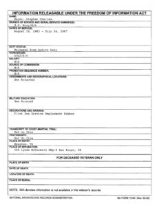 Based on Stephen’s summary sheet he spent 3 years, 10 months, 20 days in the US Navy as a STG2 – Sonar Technician (Surface) E-5. There is no record of him attending BUD/S or being assigned to a UDT/SEAL Team.