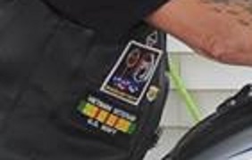 Can’t make it out but suspect that patch on the back of his vest says “your dick is too short if you can read this”