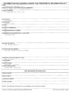 His only award was the National Defense Service Medal, no awards for service in Vietnam.