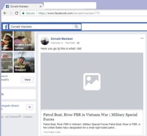 Someone shared their work with us on this fellow, Donald Maclean. He claims that he served in Vietnam in the “brown water Navy”. Notice the Vietnam Service Medal patch on his vest;