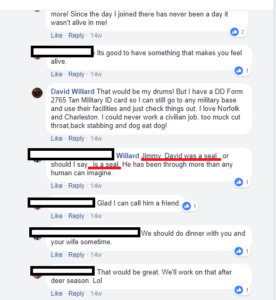 I asked him how as a GS was he stabbed, shot at, burned and beaten in service related incidents, and also has no purple heart(s). He hasn’t answered me yet has posted several posts since then.IDK, something seems off. Maybe its all legit and he will clear it up. Oh, I didn send him the stolen valor link to his FB friend Willard.