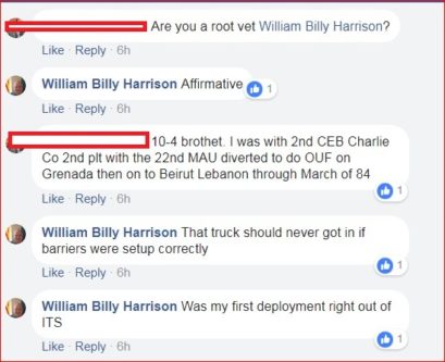 Our partners at Military Phonies share their work on this fellow, William Hume Harrison who claims in social media discussions to have been a survivor of the Sunday, October 23, 1983 bombing of the US Multi-National Force barracks in Beirut, Lebanon as a member of the 1st/8th Marines of the 24th MAU. He also claims seven years of service in the US Marine Corps;