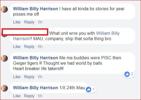 William Billy Harrison, Lyin’ Marine, will see his name up in lights, when each of us mention him in our comments. To get things warmed up, I left some love in a message, and posted on hie wide open Facebook page