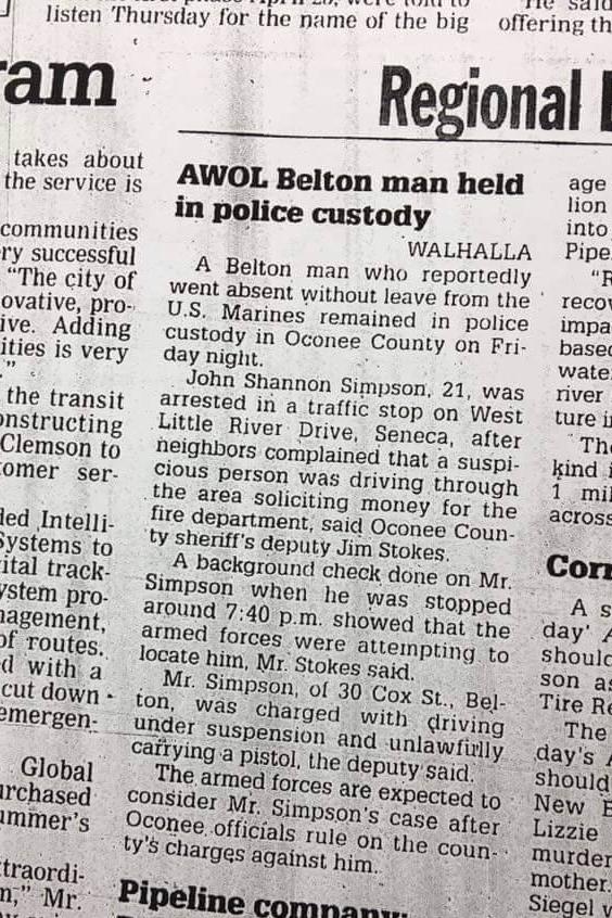 “After leaving the Marines, Simpson ran a burglar alarm business in Anderson. Numerous customers complained about the business and state officials suspended its license in 2012.”