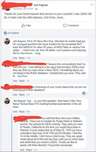 I left James Henry Kapner, phony SEAL some love in a facebook message”