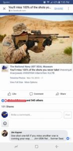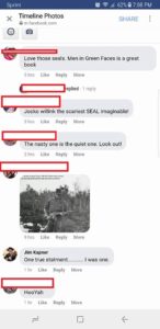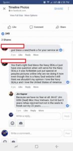 “You fucking piece of shit poser. Your false claims to have been a SEAL are going to haunt you for a very long time. Every person that uses your name in a comment at the link below, will generate a gooogle hit, exposing you to anyone who chooses to use gooogle to look into your lies. You might try to go here and unfuck yourself, or you may take the coward’s way out and just block me on facebook, thinking that will make it all go away. It won’t, because me and others like me will keep your name up in lights for a very long time.