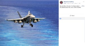 Hmmmm, check out his Feb 11 post. His FB friend Hans Fett, claims to be the former XO of the Blue Angels. Yet in his pics his parking space sign says “Admin Officer”. Not a single pic to show he was a pilot or the XO. I knew his name sounded familiar. He is FB friends with Sherry Boggs https://www.azuse.cloud/?p=77231 before she took down her page. I have messaged him a couple of times to clarify it but he won’t respond.