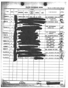 Purple Heart Recipient – False claim, there is no official record and he was not mentioned as being wounded in combat by the enemy in other supporting documents (official US Navy Deck Logs) with respect to incidents of direct combat action involving USS Buchanan.