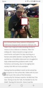 Richard Eric Valero is just another “homeless” bum falsely claiming to be a veteran so he can scam people. He is just a more sophisticated version of the fake veterans out panhandling with their cardboard signs that we see at the street intersections. I would venture an estimate that over 3/4ths of the alleged “homeless veterans” never served any significant time in the military, if at all.