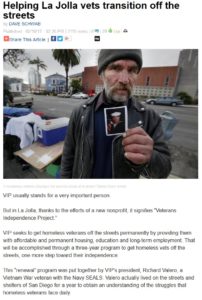 This “renewal” program was put together by VIP’s president, Richard Valero, a Vietnam War veteran with the Navy SEALS. Valero actually lived on the streets and shelters of San Diego for a year to obtain an understanding of the struggles that homeless veterans face daily.