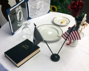 A similar set-up was maintained in the chow hall at NAS Brunswick, ME, “saving” a place for those not present. It always gave me a moment to pause, and reflect.