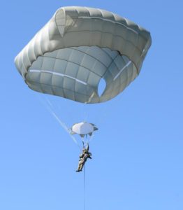 Okay, so the military parachutes aren’t as maneuverable as sport parachutes. There’s a simple answer to that: give them the sport rigs to use, and make them all pretty with stars and planets and stuff like that.