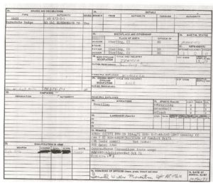 His Form 66 pages above show he never went to any active duty course other than jump school and possibly the Armor officer basic course. He managed to get an XO slot with an A-team with the 19th SFGA but he was never SF qualified. The SF officers course, at that time, required 12 weeks of active duty at Fort Bragg. His comment about 8 months of “jungle training” is a lie. He was also never promoted beyond 1LT.