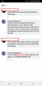 And here he’s telling somebody how to get a frogman patch from Medals Of America