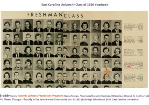 Of course, there’s no record of him attending the United States Naval Academy, but when confronted, he says that’s because he attended under another name, his name before he was placed in the federal Witness Protection Program. The Witness Protection Program folks messed up, because, he was John Braddy back in high school in North Carolina;
