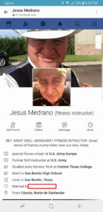 Maybe, maybe not. The Drill Sergeants I had there on Fort Lost-in-the-Woods wouldn’t put up with one of theirs lying to the Joes about their past, that could have been what got Jesus Medrano kicked off the trail. Another thing among former DS’s is they regard those who were kicked off the trail as little more than dogshit on the sidewalk and I wonder if he didn’t have to take an early Retirement due to some past dickstepping, IMHO Jesus Medrano looks like the “Creepy Guy” who cruises around in a windowless van.