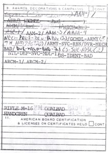 It looks like he took up the Clinton Administration on their offer of an early retirement in 1994. I don’t see any time he spent as a Master Fitness Trainer, in either the school or in his units. I’m pretty sure there are no special forces qualified generator mechanics who are also snipers.