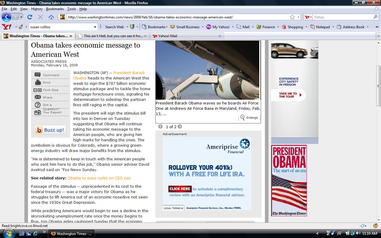 I’ve just got one more question for the new Obama Administration; how many more billions of dollars is the new president spending flying around the country to cram this POS bill down our throats?