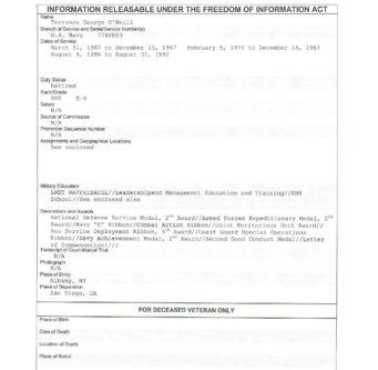 It looks like O’Neill was aboard the USS Kirk, a frigate, FF-1087, in April, 1975 when it participated in Operation Eagle Pull, the evacuation of Phnom Penh, Cambodia, and Operation Frequent Wind, the evacuation of Saigon, Vietnam.