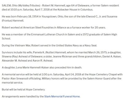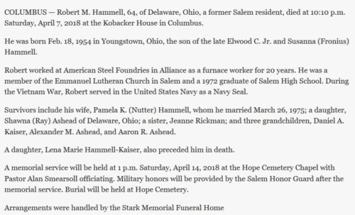 Someone noticed an obituary in which Robert Hammell was memorialized and whoever wrote it thinks that Robert was a Navy SEAL;