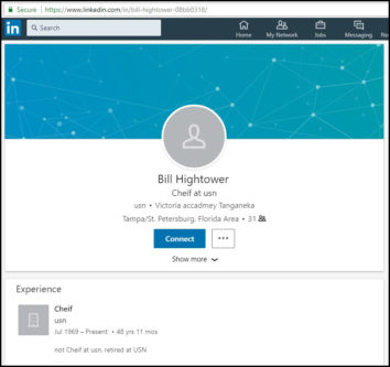 He also claims to be a Navy Chief on LinkedIn, even though he can’t spell the rank;