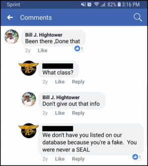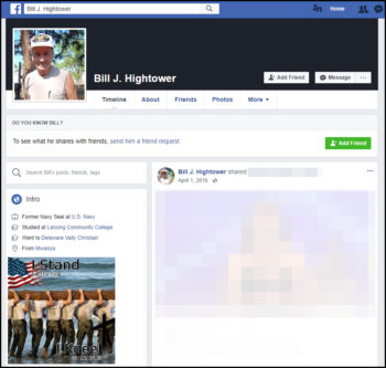 Our partners at Military Phonies share their work on this Bill Hightower fellow who claims to be a Navy SEAL on his Facebook Page;