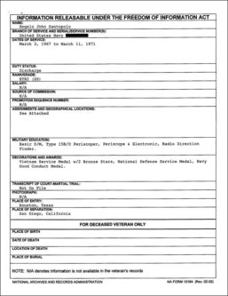 Angelo John Santopolo (FRPR score of 256) is not a Vietnam Veteran. Vietnam Era, Yes. He never set a foot in country. That’s why there is no listing of being awarded the Vietnam Campaign Medal on his FOIA.