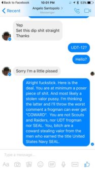 Angelo John Santopolo, phony Navy SEAL: Yep. Set this dip shit straight. Thanks.